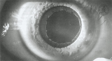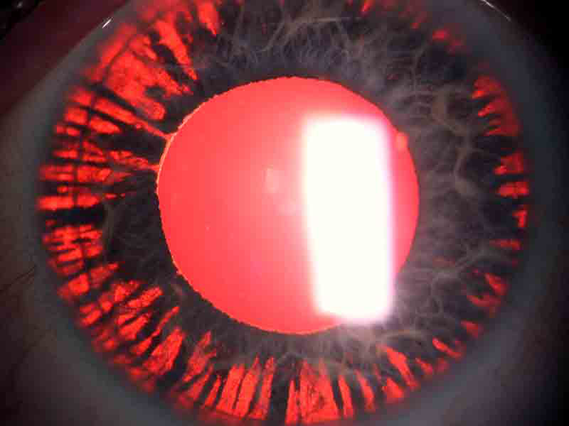 An eye with pigmentary glaucoma demonstrating transillumination defects.