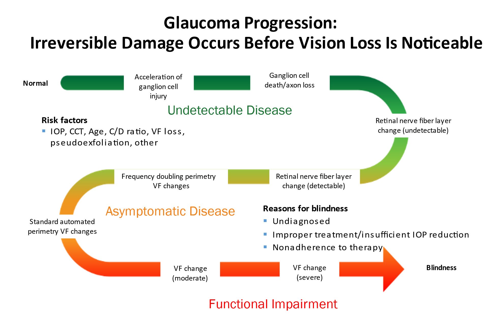 The vision loss from glaucoma can be mild and may not even be noticeable by the patient. However, sometimes it can progress to severe vision loss. Glaucoma can even lead to total blindness. The rate of disease progression can also vary significantly . Some patients progress very slowly over the course of many years. Others can develop very rapid vision loss in just a few weeks or months.