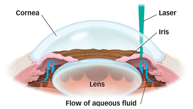 Laser Peripheral Iridotomy (LPI) is an office-based laser treatment designed to treat angle closure glaucoma and narrow angle glaucoma. The laser used, referred to as a YAG laser (Yttrium-Aluminum-Garnet), fires a brief, high energy laser pulse to create a tiny hole in the iris. This allows the aqueous to bypass the normal outflow path, which is through the pupil. As a result, the angle will open.